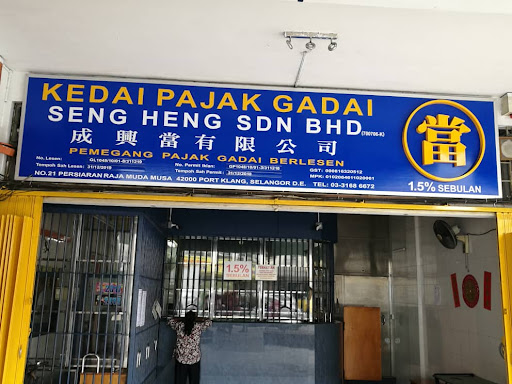Kedai Pajak Gadai Seng Heng Sdn. Bhd. ialah sebuah syarikat pajak gadai berdaftar di Malaysia yang menawarkan perkhidmatan pinjaman tunai dengan menggadai barang seperti emas, peralatan elektronik, dan aset bernilai lain. Lokasi utama mereka terletak di No. 21, Persiaran Raja Muda Musa, Kawasan 13, 42000 Pelabuhan Klang, Selangor. Syarikat ini beroperasi secara sah dan menawarkan proses yang cepat, selamat, dan telus kepada pelanggan.
